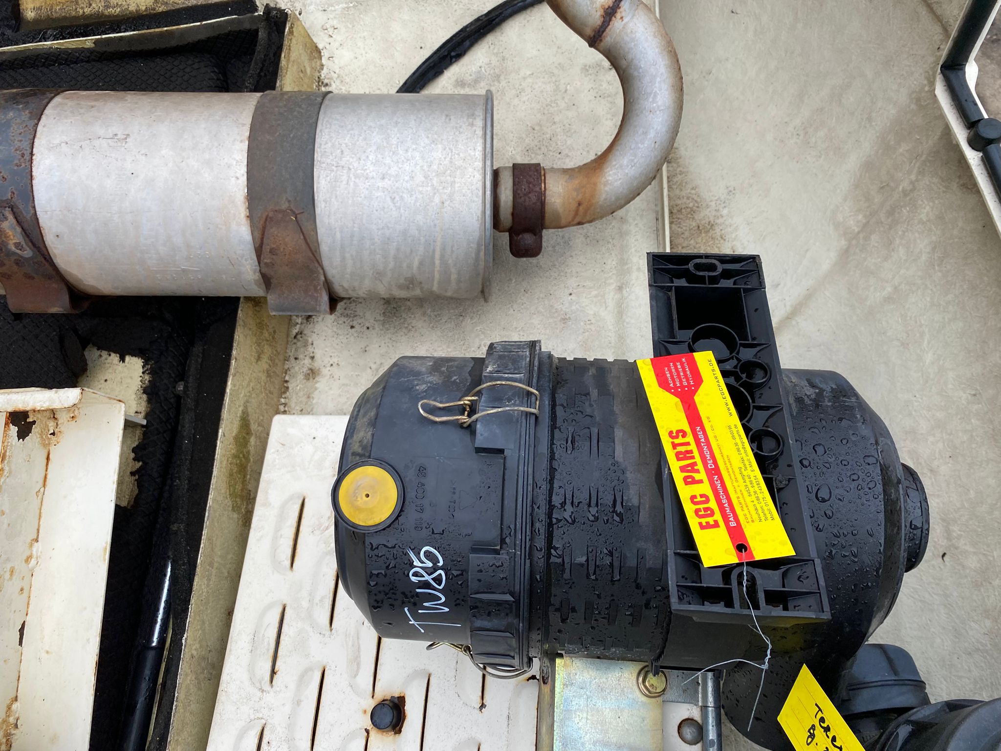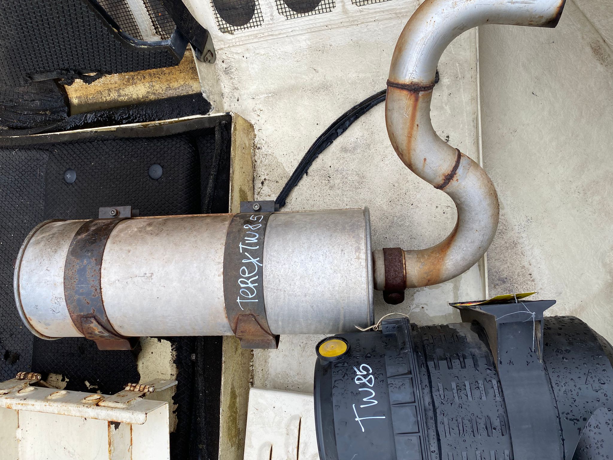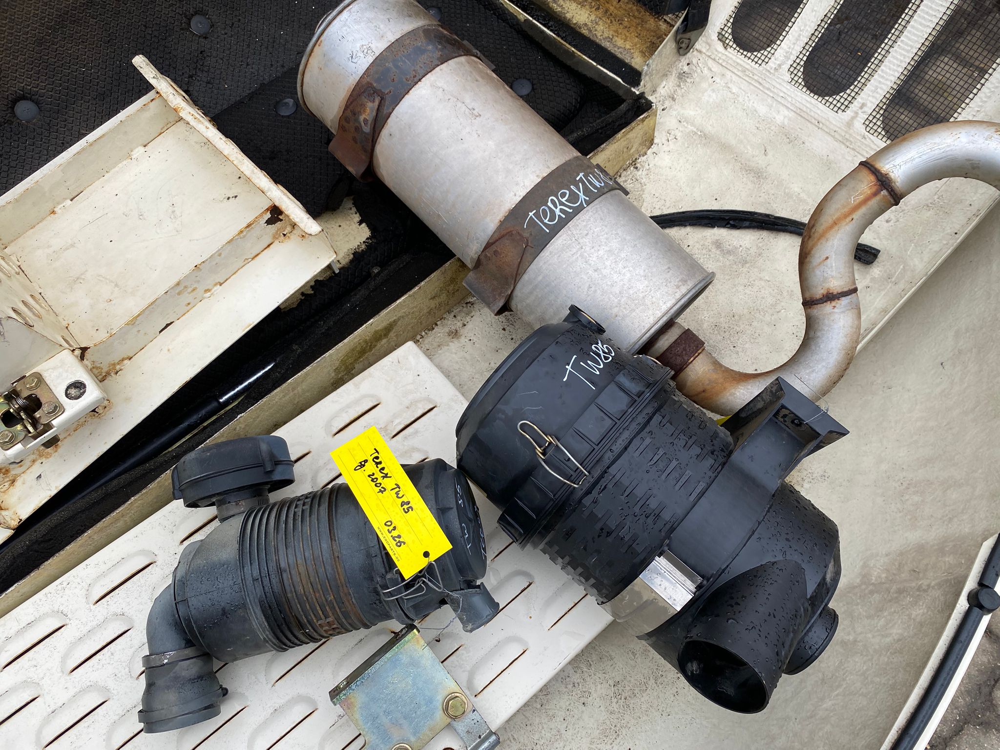 Tags Auspuff, Luftfiltergehäuse, Magnetventile u.a. Teile gebraucht aus Mobilbagger Terex TW 85