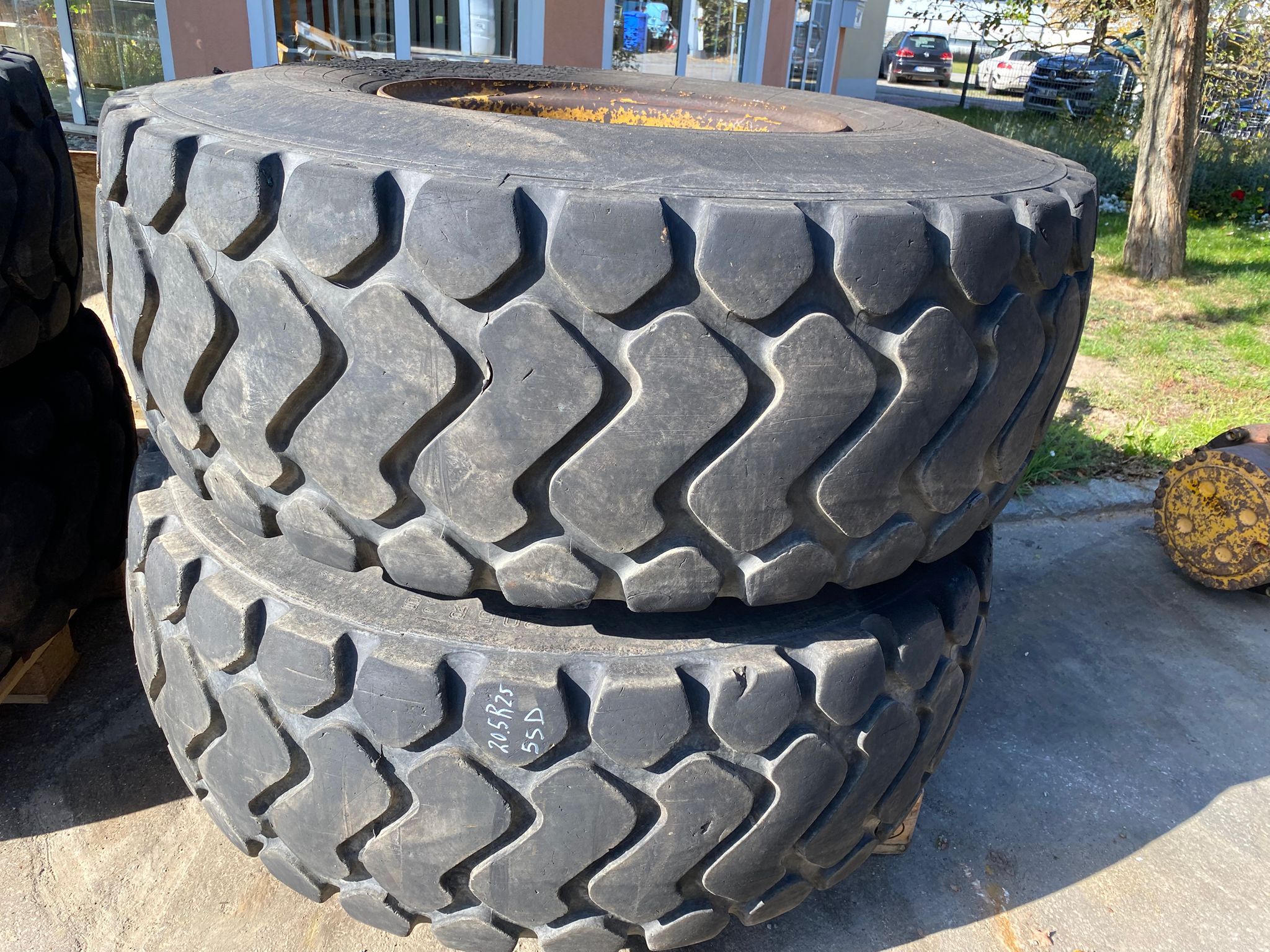 Reifen 20,5-25 auf Felgen mit 12 Löcher aus Hanomag 55D Teilweise gebrannt